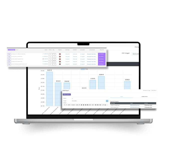 track projects, task progress, and daily reports directly from the dashboard.